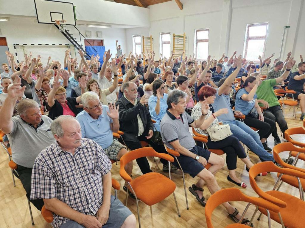 Zbor prebivalcev in prebivalk vasi Tinje. Foto: STA