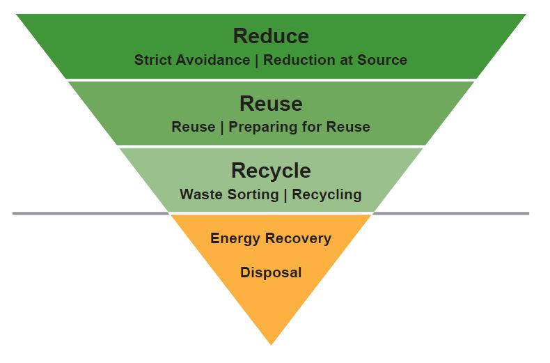Ukrepi, ki se izvajajo v EWWR, obravnavajo »3R«: Zmanjšajte odpadke, Ponovna uporaba izdelkov, Reciklirajte material .