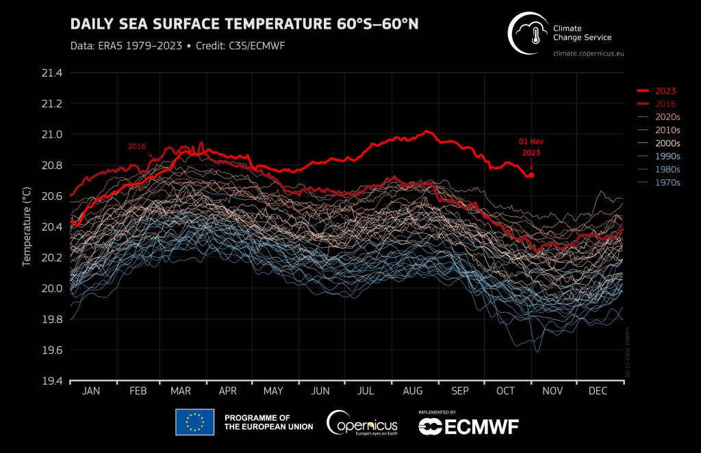 Svet je medtem na poti do najbolj vročega leta v zgodovini. Prejšnji mesec je bil najtoplejši oktober v zgodovini – po podatkih evropske službe za podnebne spremembe Copernicus je bil peti zaporedni mesec rekordnih temperatur po vsem svetu.