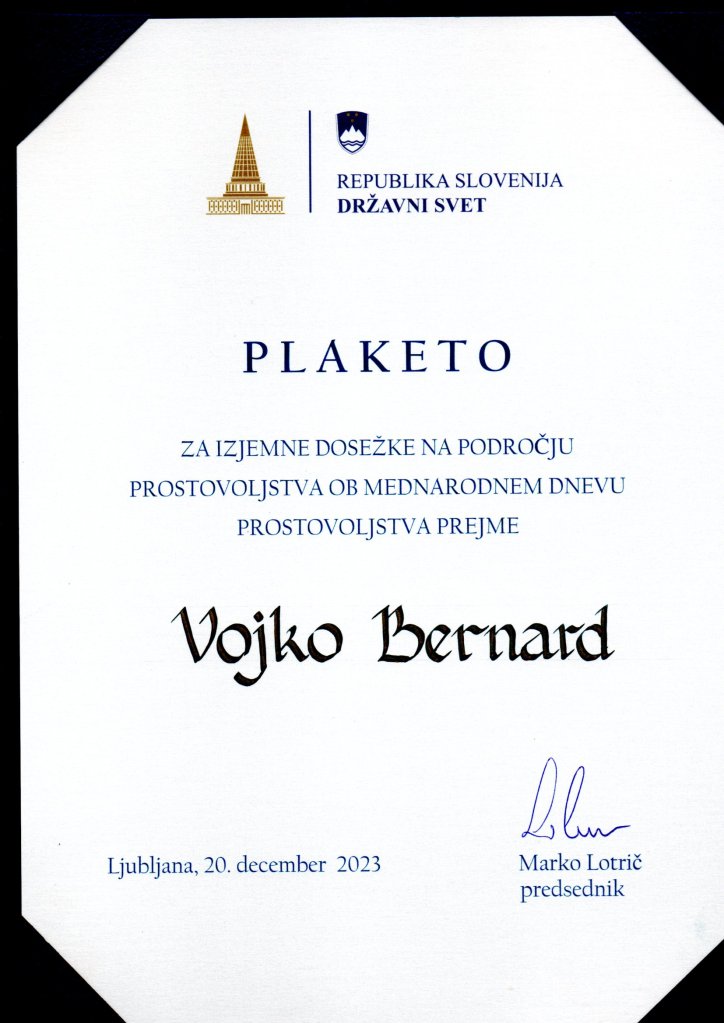 V AAG smo veseli in ponosni, da smo za svoje vztrajno delovanje v letošnjem letu dobili tudi priznanje s strani države. Predsednik AAG Vojko Bernard je namreč za svoje dolgoletno prostovoljsko delo na področju varstva okolja in narave prejel plaketo Državnega sveta najzaslužnejšim posameznikom in organizacijam s področja civilne družbe za leto 2023 za izjemen prispevek k izboljšanju kakovosti življenja družbe kot celote v okviru opravljanja prostovoljskega dela na področju varstva okolja in ohranjanja narave.