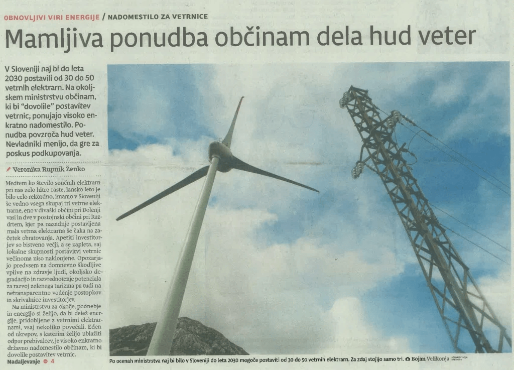 Mamljiva ponudba občinam za veterne elekrarne dela hud veter