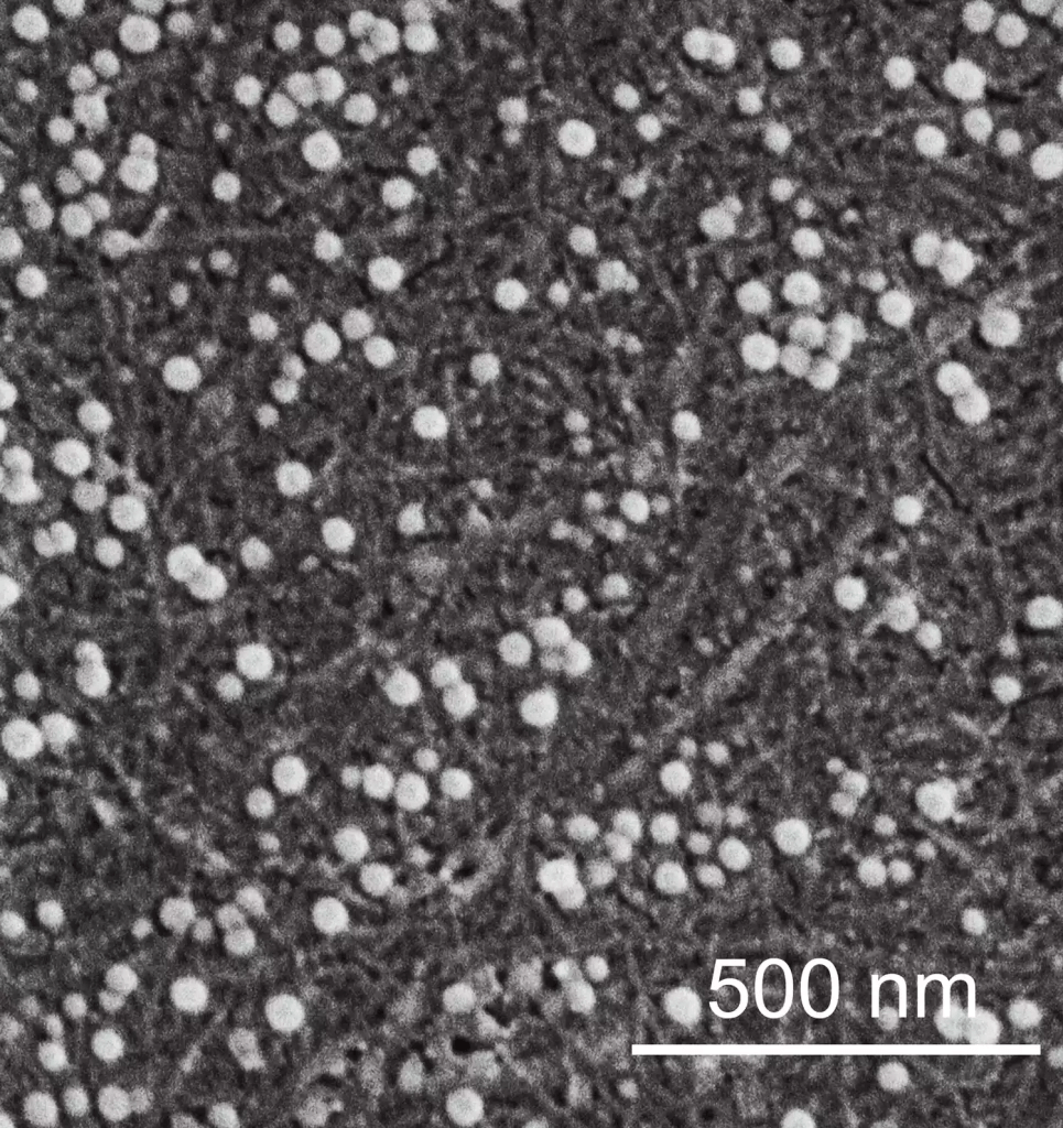 Fotografija mikroplastike (okrogli beli delci) na membrani filtra Vsak liter vode je v povprečju vseboval 240.000 delcev iz sedmih različnih vrst plastike. Skoraj 90 odstotkov teh delcev je bilo nanoplastike, sestavljene iz sintetičnih kemikalij s …
