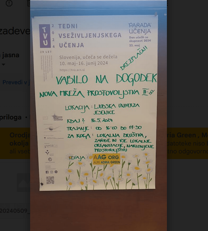 | Alpe Adria Green bo 16. 5. 2024 v prostorih Ljudske univerze Jesenice v okviru tednov vseživljenjskega učenja 2024 izvedla brezplačno… Nadaljujte z branjem |