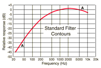 Značilnost filtra A najdemo na spletu, npr. pod Hyperphysics (Georgia State University, ZDA).