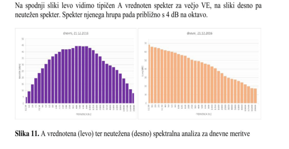Dokaz za prisotnost NF hrupa in infrazvoka pri vetrnih elektrarnah: