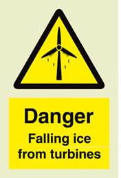- V tujini imajo posebne oznake nevarnosti odletavanja ledu in obstajajo tudi ocene tveganj, konkretno za vsako vetrnico. Možne razdalje odletavanja kodov ledu niso ocenjevane. V potrditev navedenemu prilagamo strokovno literaturo o oceni tveganj (točka 22), ureditve v več državah ter nekaj oznak: