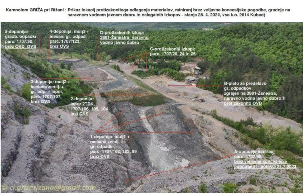 Pričakujemo takojšnje in temeljito posredovanje Inšpekcije za okolje in Rudarske inšpekcije ter ostalih pooblaščenih organov, da preprečijo nadaljnjo okoljsko in gospodarsko škodo ter uničenje lokacije kamnoloma Griža za bodočo glavno akumulacijo pitne vode v slovenski Istri!