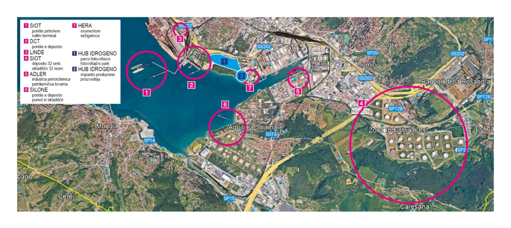 2) Naprava za proizvodnjo in skladiščenje vodika pa je zgrajena na drugi strani sežigalnice in gleda na plovni kanal Žavlje.
