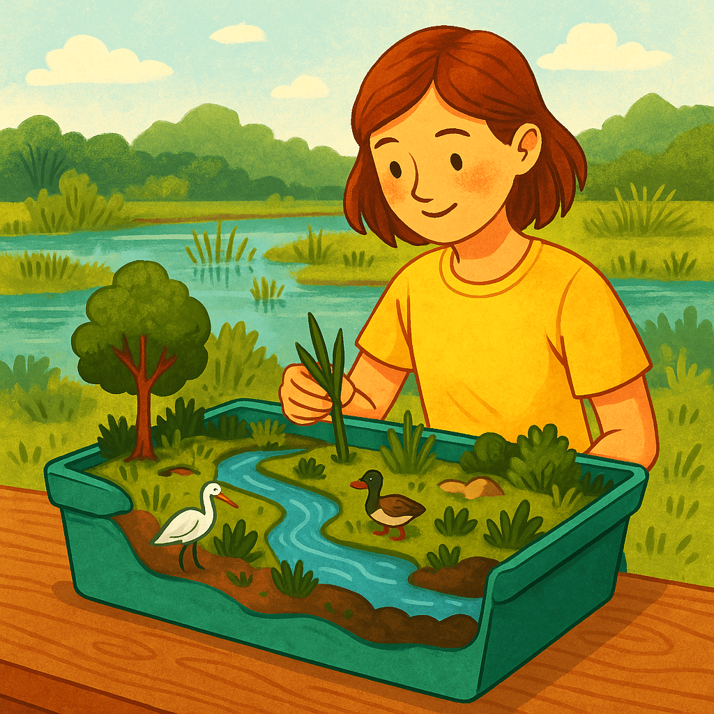 Osrednji del aktivnosti so ustvarjalno-naravoslovne delavnice, v katerih učenci oblikujejo svoj »mini biosferni kotiček« – model zdravega vodnega ekosistema, ki ponazarja povezave med vodo, rastlinami, živalmi in človekovimi vplivi. Delavnice dopolnjujejo predstavitve o ekosistemskih storitvah, podnebnih spremembah in vlogi mokrišč pri varovanju voda.