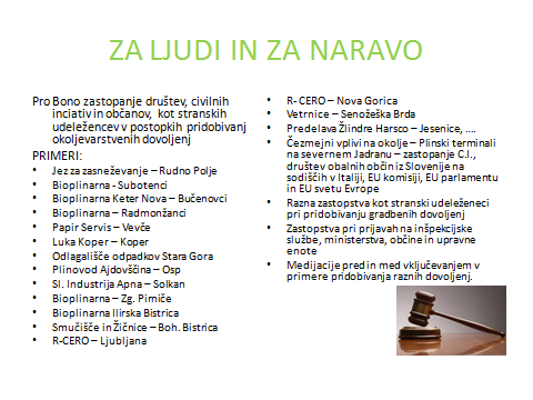 – Zastopanje civilnih Iniciativ in posameznikov na področju okoljskih vprašanj