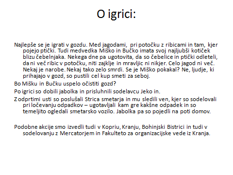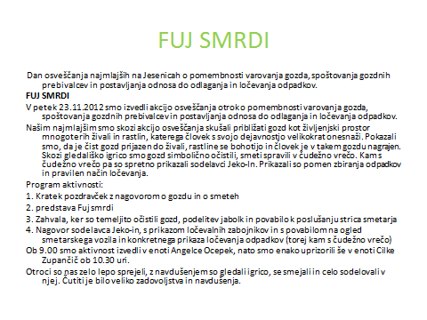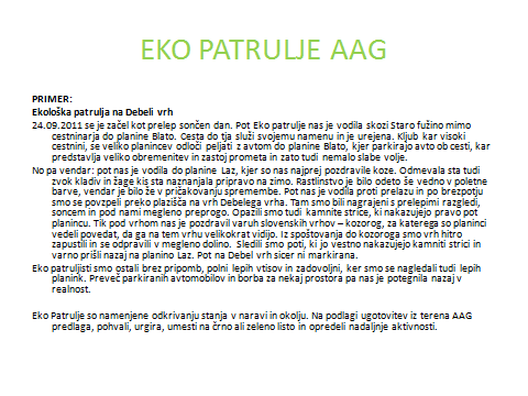 - skrbimo za naše okolje in ohranitev narave za naše zanamce.