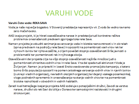 - delujemo popolnoma drugače, od profitnih organizacij. AAG porabi ves zaslužen denar za varstvo narave, okolja in zdravja ljudi ter zaščito živali,